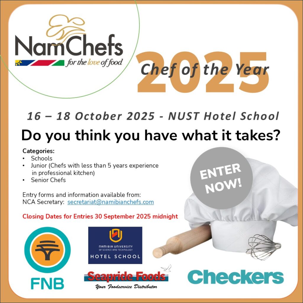 - To on a regular basis present a Food Fair, ensuring promotion of Namibian Products and trade in the Namibian Chefs Association.